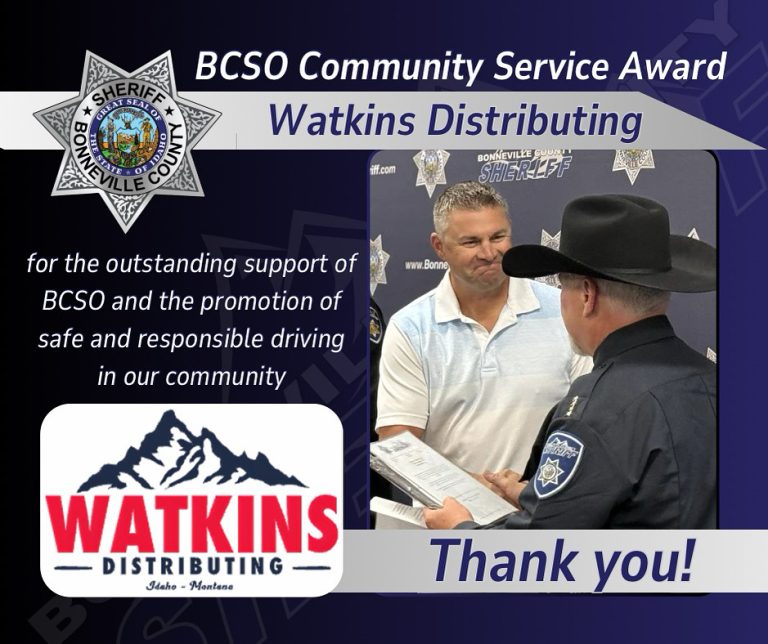 This week Sheriff Sam Hulse and the BCSO Team recognized Watkins Distributing with the Sheriff’s Office Community Service Award. Watkins Distributing has been a great partner in supporting training for our team on DUI Detection as well as promoting responsible sober driving in our community. We appreciate their partnership and great work!